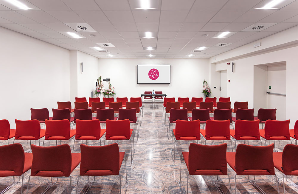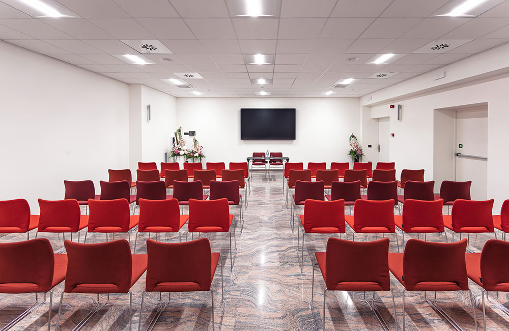 Sala da 72 m² con disposizione flessibile per eventi aziendali fino a 60 persone. Completa di attrezzatura multimediale, si adatta a meeting, workshop o conferenze in piccolo/medio formato. Arredi moderni e comfort per un’esperienza professionale senza compromessi.